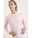 Pink pullover with cream contrast trim crew neck. Slimmer fit.