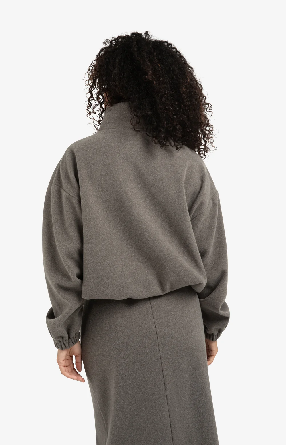 Create an accountThis soft sweatshirt features voluminous balloon sleeves for a modern, feminine silhouette. The high zip collar with subtle drawstring details adds a sporty touch. Finished with elastic trims for comfort and style. Perfect for a relaxed yet elevated look. The model is 173 cm and wears size S.