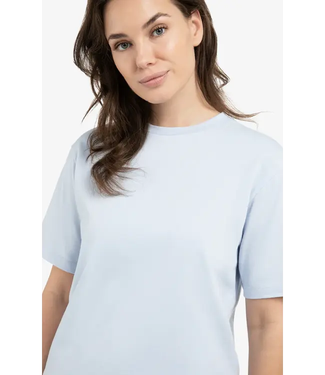 This boyfriend T-shirt features a loose fit. Made from a soft cotton quality, its finished with a classic crew neckline and short sleeves. The minimalist design makes it a versatile piece for a casual and comfortable look. The model is 178 cm and wears size S.