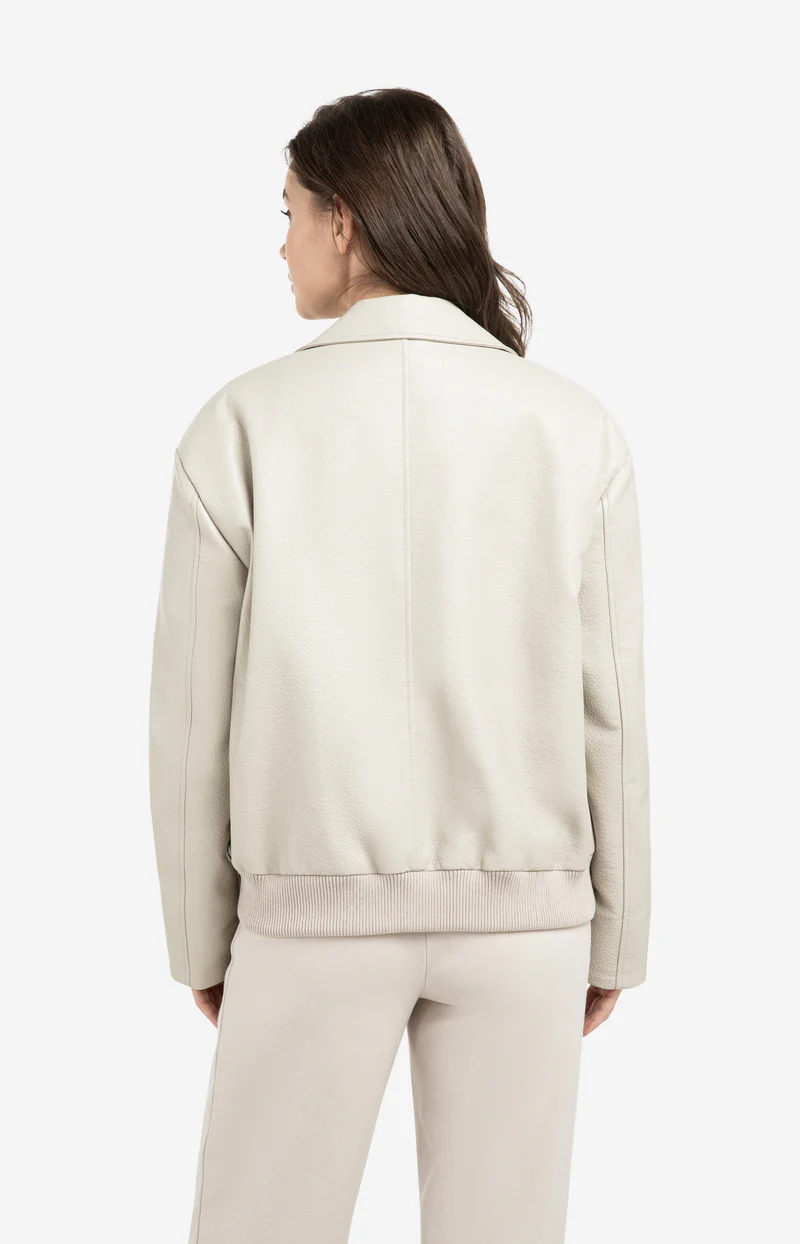 Create an accountThis oversized jacket is made from soft faux leather with a refined texture. It features a classic collar, button closure, long sleeves, and ribbed cuffs and hem. The clean design gives it a modern and edgy appeal. A versatile piece that pairs effortlessly with both casual and elevated looks. The model is 178 cm and wears size 36.