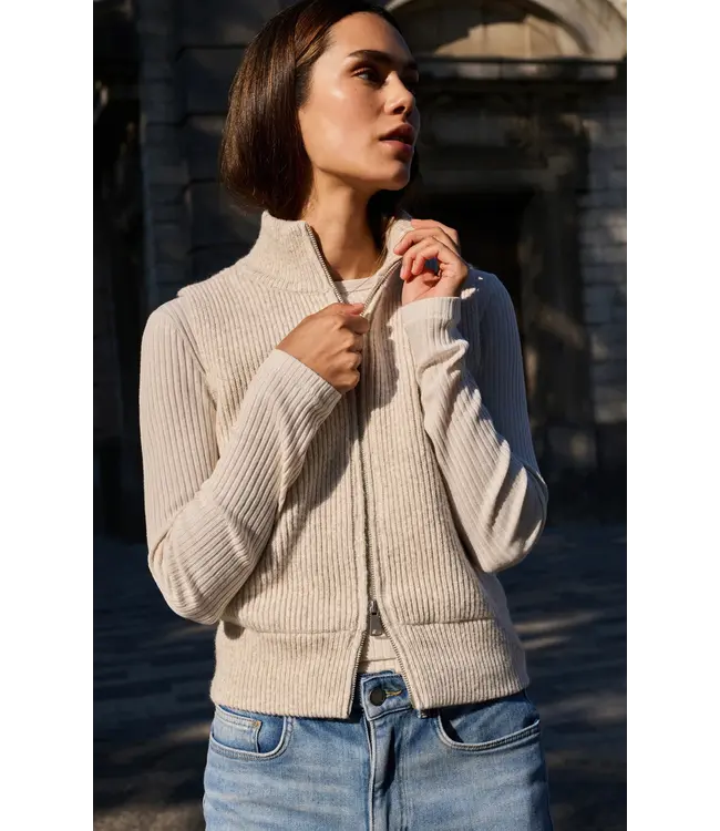 This sleeveless vest is crafted in a chunky rib knit and features a high neckline for extra warmth. Designed with a two-way zipper and a fitted waistband, it offers an oversized silhouette thats perfect for layering over blouses or sweaters. Made from a soft and comfortable fabric. The model is 175 cm and wears size 2.