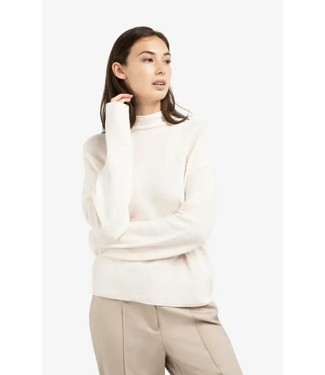 This sweater is crafted from a soft textured knit and features a regular fit. Designed with a mock neck, long sleeves and an elegant button closure at the back. The rich texture and refined details make it a stylish choice for a feminine, casual look. The model is 175 cm and wears size S.