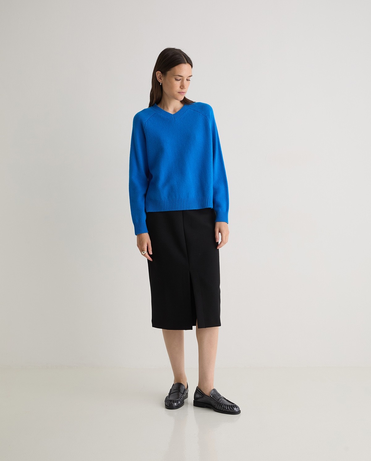 Create an accountMidi pencil skirt. Front slit. Cotton blend. Form-fitting design. No fastening. Elastic waist. Side slits at the hem.
